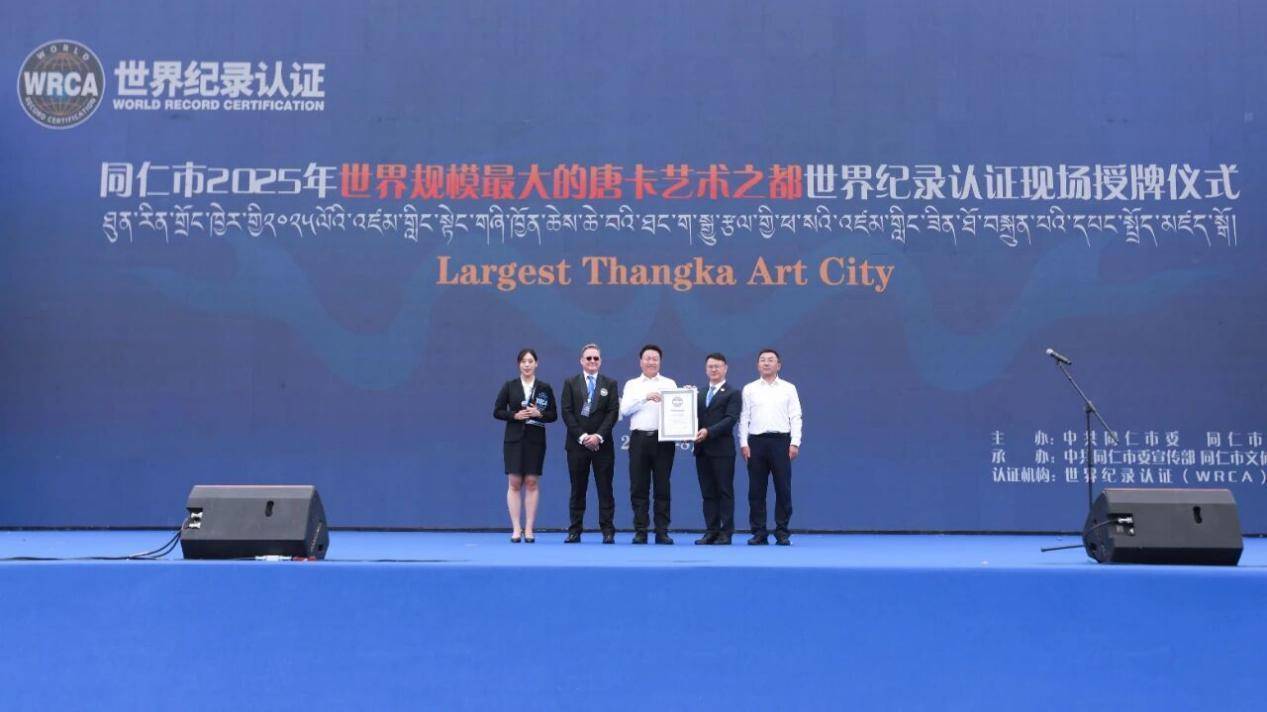 “世界规模最大的唐卡艺术之都”认证现场。同仁市委宣传部供图